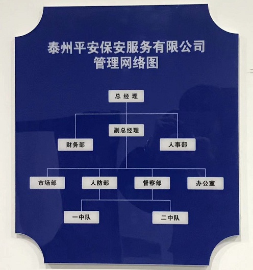 公司设有人事部、财务部、市场部、督察部、人防部、办公室等职能部门