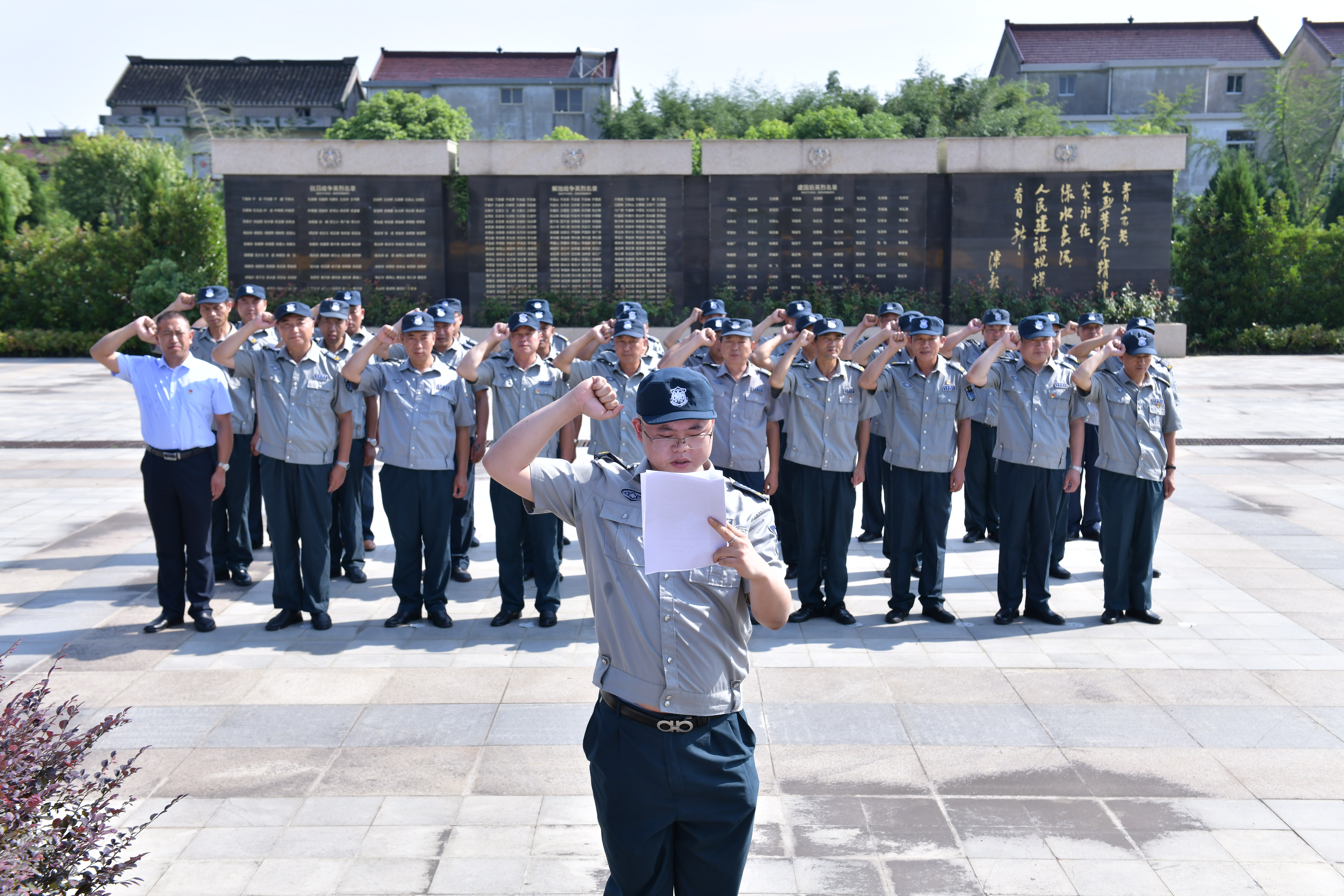 首先在公司领导的带领下统一乘车前往高港引江人民英雄纪念碑瞻仰英烈,向英雄纪念碑献花篮并在纪念碑前宣誓,我宣誓:“我是一名退役军人,保护社会稳定和人民安全,是我义不容辞的义务,保卫国家安全,是我光荣的使命,国有战,召必回!宣誓后参观烈士纪念馆并擦拭纪念碑。然后统一乘车回到会议室集中开会,主题为:“统一思想,立足本质岗位,再创辉煌”。公司领导就如何落实退役军人的四个优先,作了表态发言,就当前六稳六保工作指明了工作方向,对广大退役军人情有独钟的关爱是有目共睹的,进一步证明我们平安保安人敢于担当、敢于作为、敢于率先的精神。