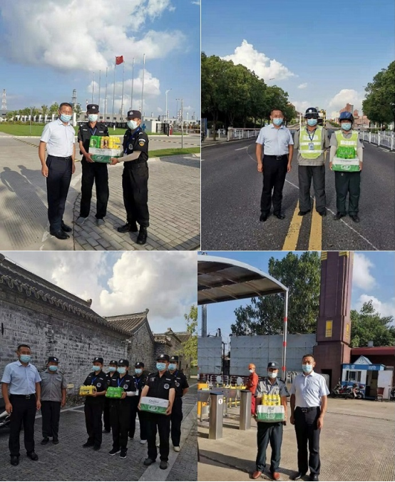 自7月20日南京禄口机场疫情爆发以来,泰州平安保安服务有限公司积极响应、全面动员,对各网点出入车辆和货物进行全面消毒,出入人员行进行体温检测、查看行程码、健康码等。正值三伏季节持续高温,泰州平安保安服务有限公司领导层干部常深入到各服务网点看望一线保安人员,提醒自身做好防疫,坚守自己的岗位,针对各自的实际情况做好安保工作,并发防暑降温用品。