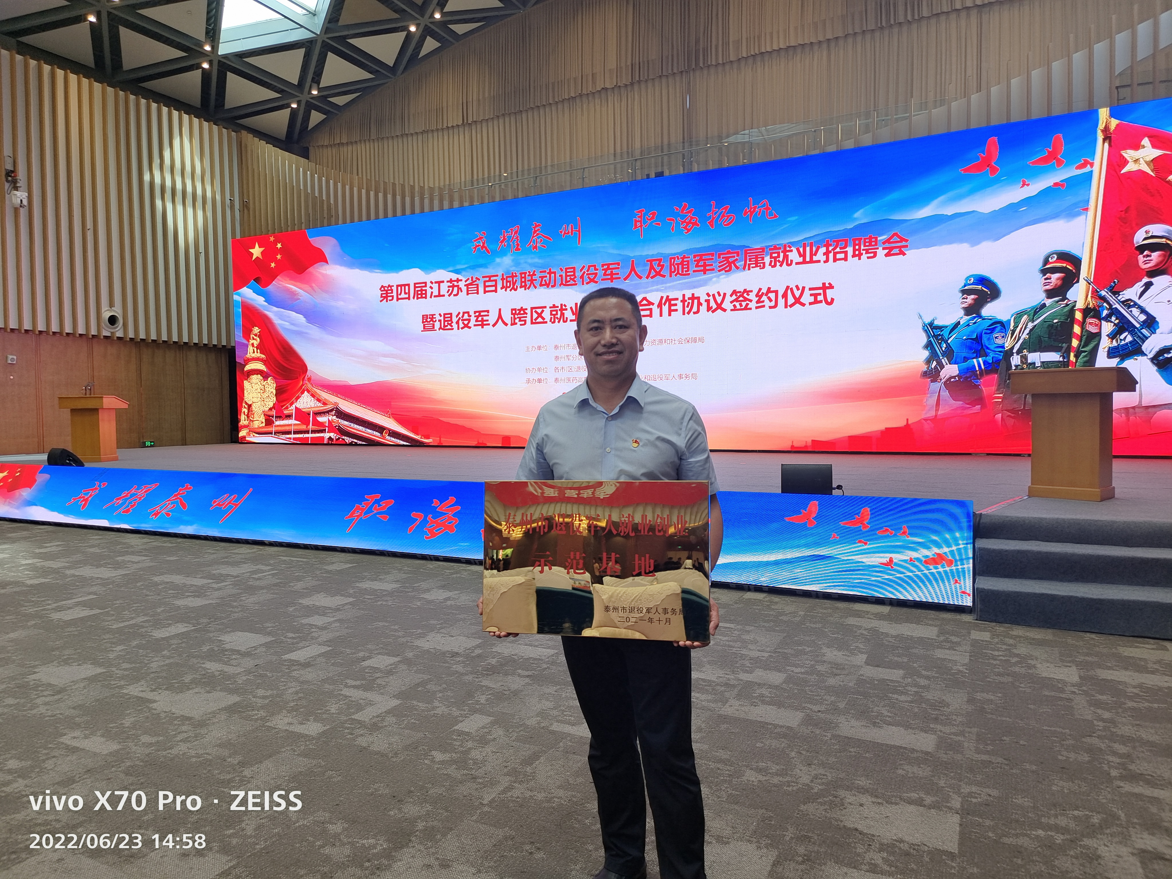 6月23日下午,由泰州市退役军人事务局、泰州人力资源和社会保障局、泰州军分区政治工作处联合主办,各市(区)退役军人事务局协办,由泰州医药高新区(高港区)社会事业和退役军人事务局承办的“戎耀泰州,职海扬帆”——江苏省第四届百城联动退役军人及随军家属就业招聘会,暨退役军人跨区就业战略合作协议签约仪式圆满落幕!